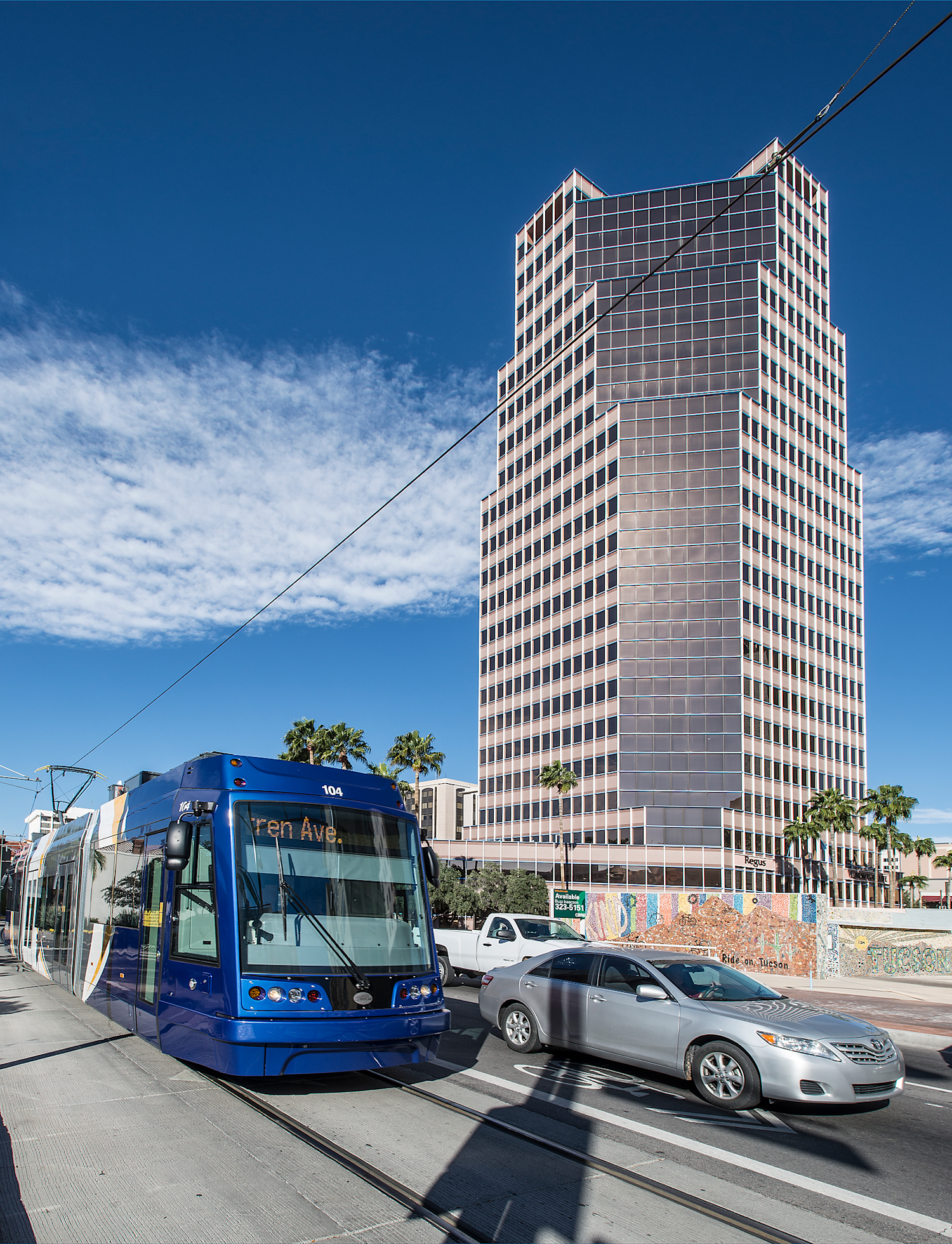 As the most prominent and recognizable structure in Tucson's downtown skyline, One South Church towers at 23 stories high with over 240,000 rentable square feet, giving it unparalleled panoramic views of the city and area mountain ranges. Located along the SunLink Modern Streetcar Route, which connects a vibrant downtown with the University of Arizona, as well as being within walking distance of federal and local courts, urban residences, and numerous retail and restaurant amenities, One South Church is Tuscon’s premiere location.